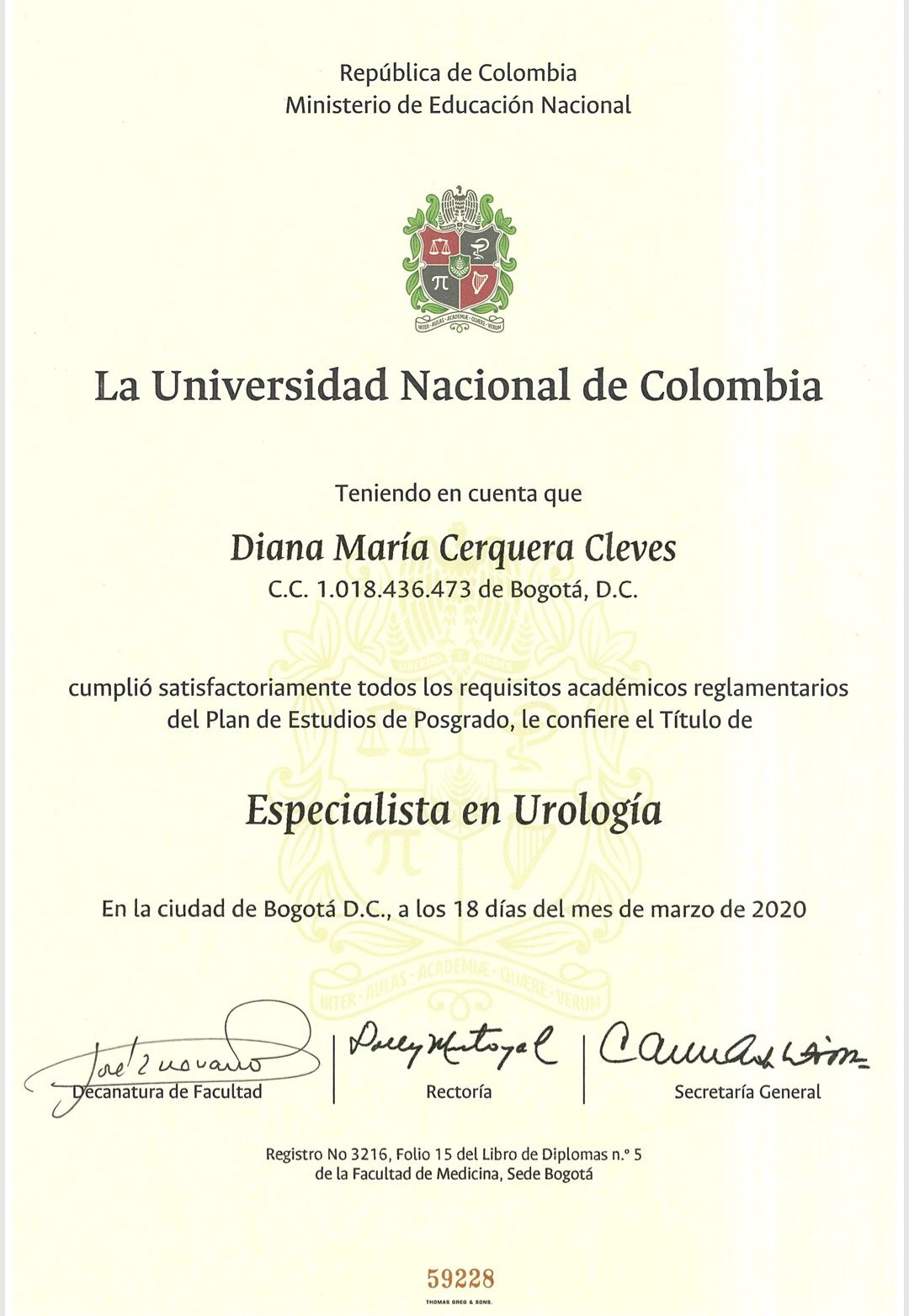 Soy uróloga egresada de la Universidad Nacional de Colombia, me caracterizo por ser una profesional responsable, priorizando siempre el bienestar integral de quienes depositan su salud en mis manos.